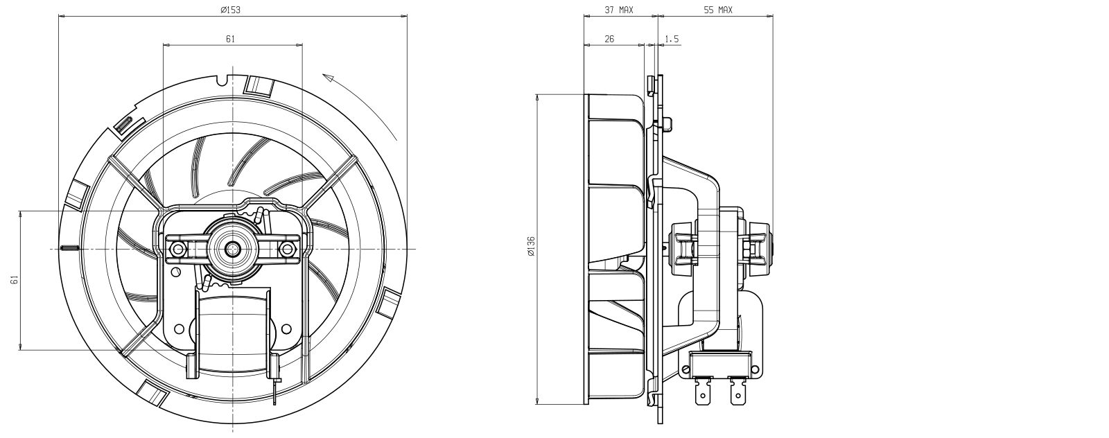 Motori a poli schermati completi di girante per il raffreddamento della maniglia e dell’elettronica a bordo di forni domestici e professionali. Disponibili in versione tangenziale con coclea in lamiera o versione centrifuga con supporto motore in plastica.